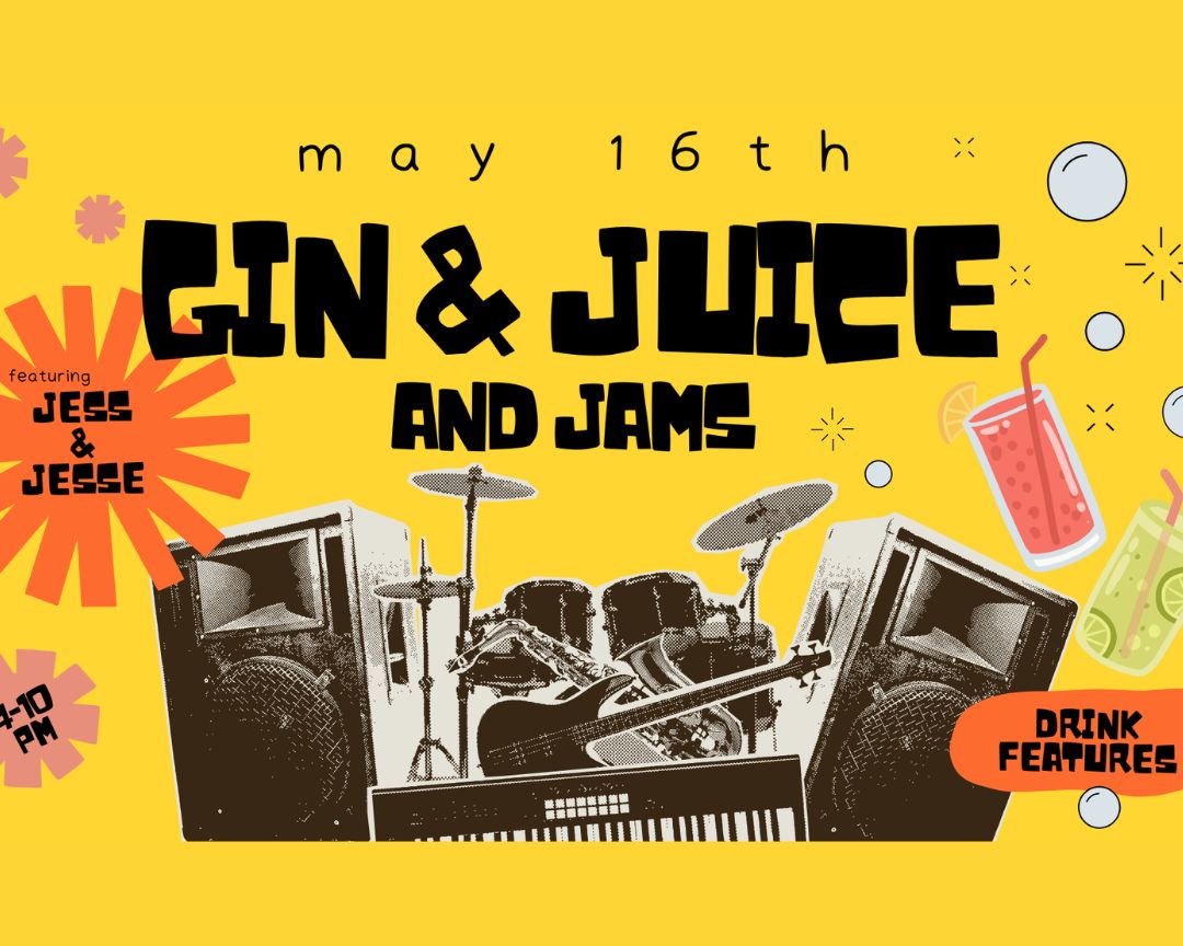 Join us for Gin & Juice and Jams, where good vibes, great music, and refreshing drink features come together for the perfect night out. Featuring live sounds from Jess & Jesse starting at 7pm, expect a laid-back, feel-good atmosphere with beats that keep the energy flowing all evening long.