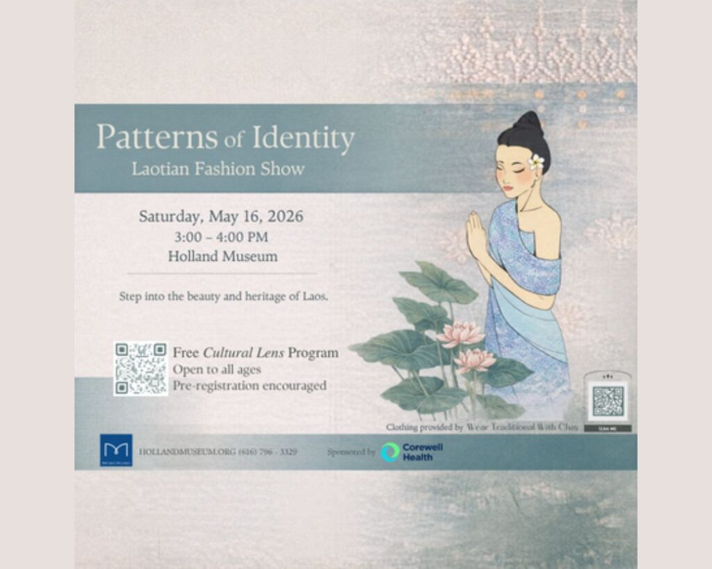 Experience the beauty and heritage of Laos during our Patterns of Identity Laotian Fashion Show. Enjoy a vibrant showcase of traditional Laotian clothing, where stunning textiles and cultural stories come to life on the runway. This free, Cultural Lens program is sponsored by Corewell Health. Clothing provided by Wear Traditional with Chay.
