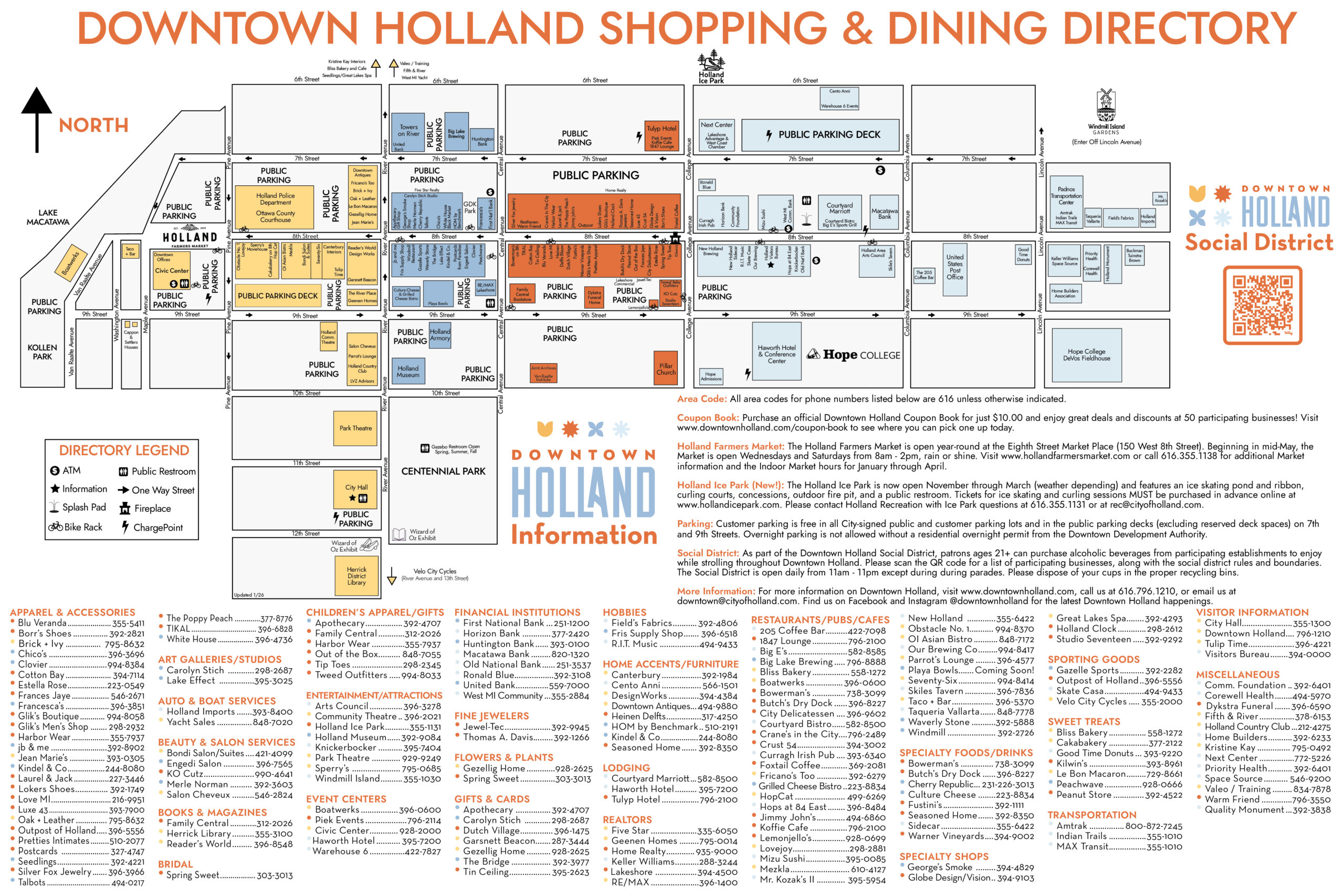 The Gerald R. Ford Regional Airport offers commercial flights to and from the greater West Michigan area. Downtown Holland is approximately a 45-minute drive from the airport. Flight information can be found on their website.